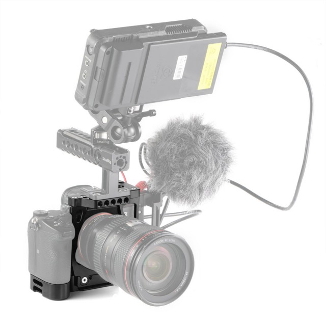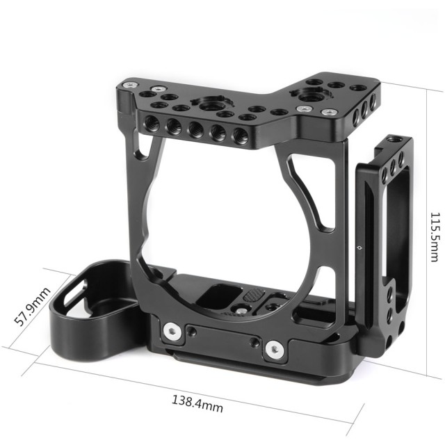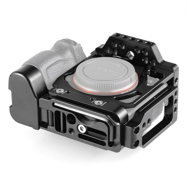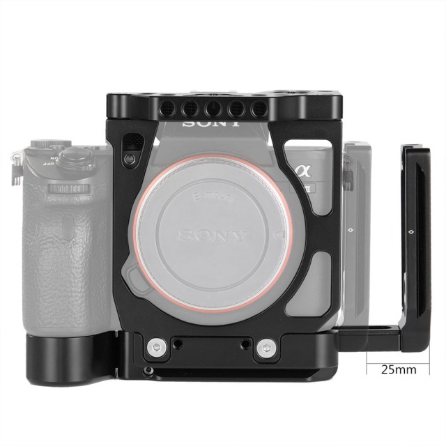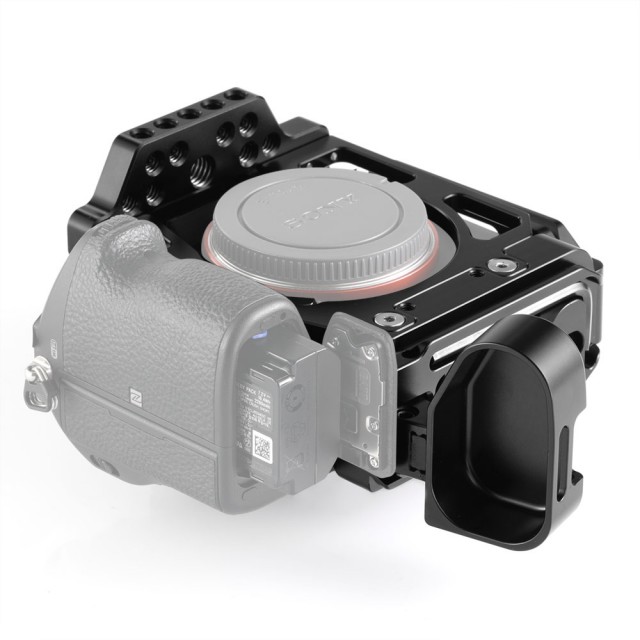 SmallRig Half Cage s Arca L-nosačem za Sony A7III A7RIII 2236 (CCS2236) je inovativni proizvod koji kombinira značajke kaveza i L-nosača koji zadovoljava potrebe hibridnih fotografa. I bočna i osnovna ploča su Arca-Swiss standarda, omogućujući brzo prebacivanje između vodoravne i okomite orijentacije snimanja. Osnovna ploča se proteže za 20 mm u visinu i savršeno pristaje uz tijelo fotoaparata, osiguravajući udobno držanje pri snimanju iz ruke. Sadrži gumb za brzo otpuštanje oko poklopca baterije tako da je prekidač baterije neometan. Bočna ploča se može produžiti ulijevo za 25 mm ako trebate više prostora za pričvršćivanje ili otpuštanje kabela. Pričvrstite SmallRig HDMI kabelsku stezaljku 2259 ako trebate zaštititi HDMI kabel i priključak. Postoji više rupa od 1/4''-20 i 3/8''-16 i Arri rupa za pozicioniranje na vrhu tako da možete pričvrstiti SmallRig 2165 Top Arm i SmallRig Ball Head Magic Arm 2115 za video snimanje.