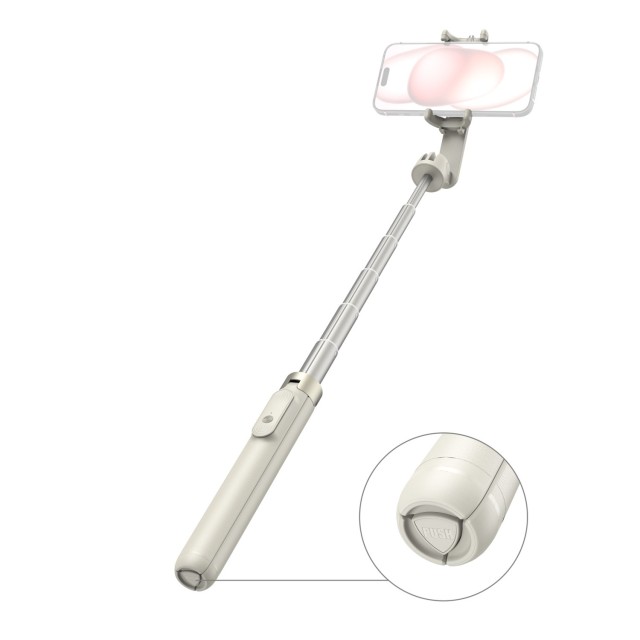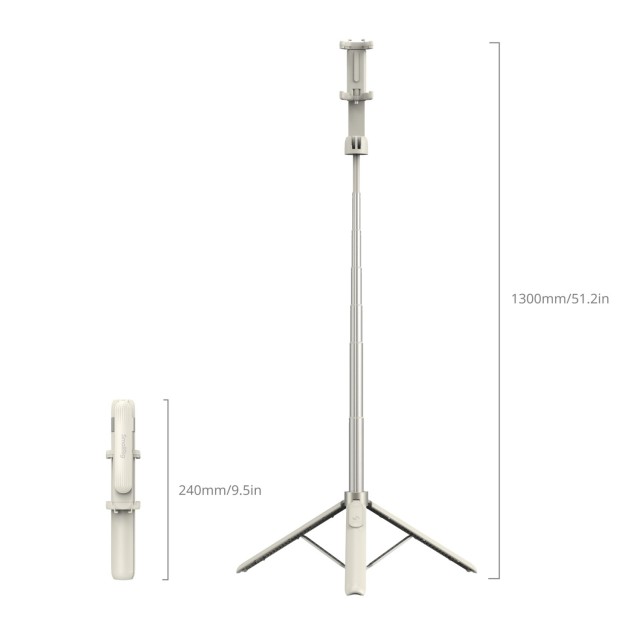 SmallRig prijenosni stativ za selfie štap ST-25 bijeli 4730 ima svestrani 2-u-1 dizajn koji kombinira funkcije selfie štapa i stativa, s podesivim duljinama u rasponu od 370 mm do 1300 mm. Sklopiva stezaljka za telefon odgovara iPhone i Android telefonima, nudeći široku kompatibilnost. S ugrađenom hladnom papučicom i vijkom s navojem 1/4"-20 na stezaljci za telefon, omogućuje jednostavno proširenje za povezivanje dodataka poput mikrofona i rasvjete za poboljšane mogućnosti snimanja. Štoviše, proizvod dolazi s punjivim Bluetooth daljinskim upravljačem, jamči stabilnu bežičnu vezu s učinkovitim dometom do 10 metara, pružajući korisnicima veću slobodu kretanja tijekom snimanja. Držač za telefon nudi rotaciju od 360°, dok potporna ruka omogućuje prilagodbu kuta od 180° kako bi se prilagodio širokom rasponu. Kutovi snimanja Također, stativ ima gumb za brzo i jednostavno postavljanje, što ga čini savršenim za putovanja ili avanture na otvorenom.