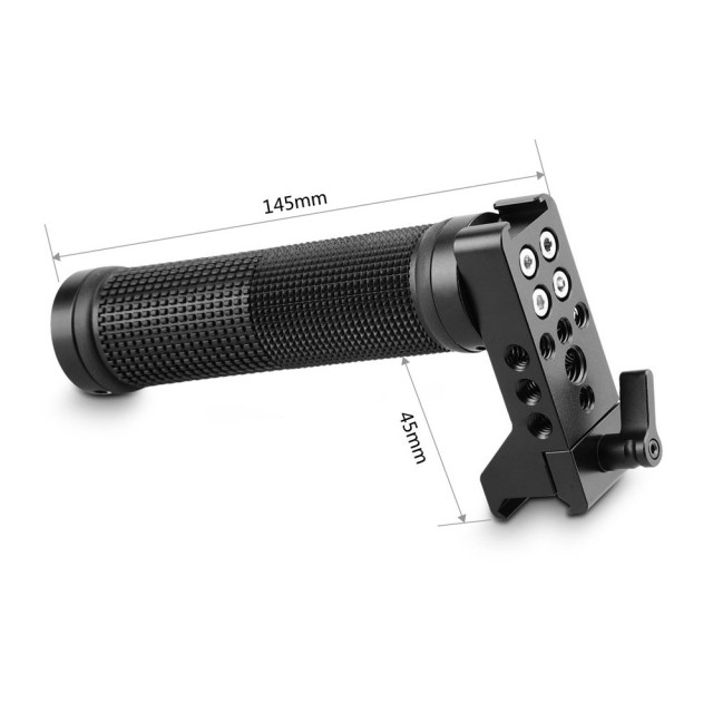 SmallRig QR NATO ručka (gumena) 2005 može se koristiti na Scarlet i Epic kamerama i na Blackmagic kamerama s donjim montiranim NATO šinama u stilu. Ova ručka ima nosač za hladno držanje na vrhu za pričvršćivanje standardnih štitnika za ruke. NATO drška dizajnirana je za brzo pričvršćivanje i odvajanje od fotoaparata bez upotrebe vijaka. Jednostavno ga postavite na NATO Rail sigurnosnu šipku i zategnite vijak. Na šini možete kliziti lijevo i desno kako biste održali ravnotežu.