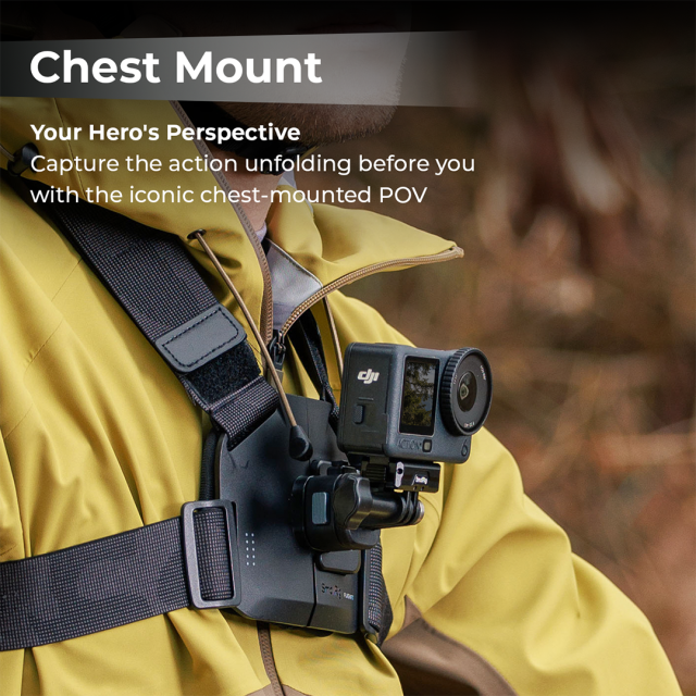 Kompatibilan s većinom akcijskih kamera koje imaju standardni dvostruki nosač, ovaj prslukni nosač pouzdan je dodatak za uroneno snimanje iz prvog lica.