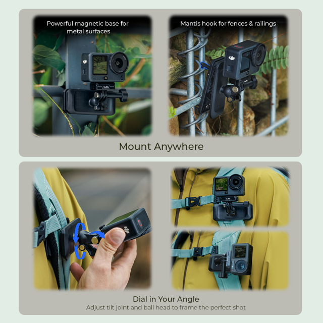 Opremljen nosačem za brzo otpuštanje u jednom koraku, omogućuje brzo pričvršćivanje i odvajanje kamere, tako da se možete usredotočiti na akciju. Ugrađena sigurnosna brava na bazi za brzo otpuštanje sprječava slučajno odvajanje tijekom kretanja, osiguravajući pouzdanu sigurnost kamere čak i u okruženjima s jakim vibracijama.