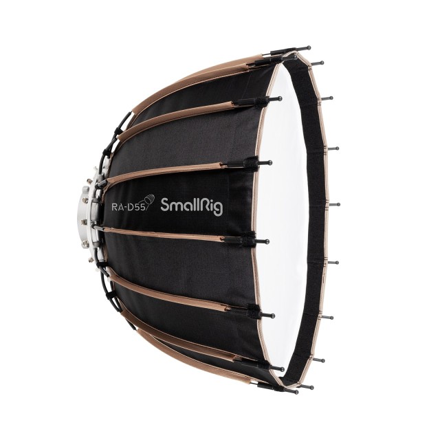 SmallRig RA-D85 Parabolic Softbox 3585 svestrano je meko rasvjetno tijelo promjera 55 cm. Zahvaljujući univerzalnom dizajnu nosača Bowens, kompatibilan je sa SmallRig RC 120D/RC 120B/RC 220D/RC220B i drugim svjetlima za montiranje Bowens. Zahvaljujući novom dizajnu za brzo otpuštanje, kupolu možete jednostavno postaviti i ukloniti u 15 sekundi. Paket RA-D55 također uključuje saćasti filter od tkanine visoke kvalitete, dva difuzijska filtera (unutarnji + vanjski) i torbu za nošenje.