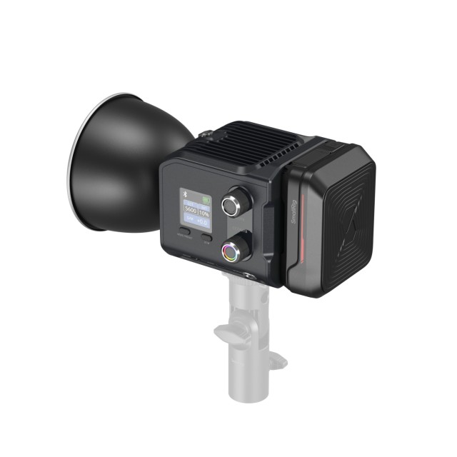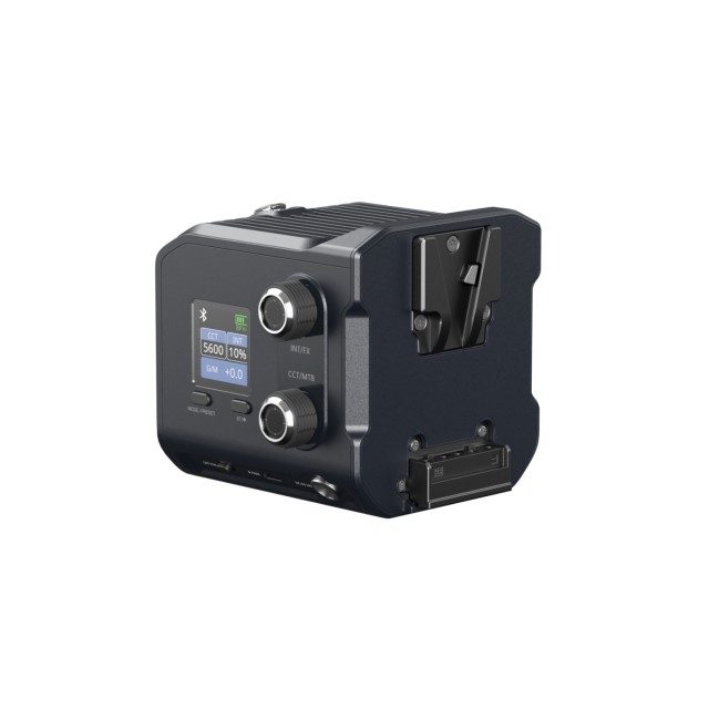 Uređaj nudi šest mogućnosti napajanja – bežično i žično – što omogućuje nesmetano snimanje. Može se puniti putem DC adaptera s ulazom do 110 W ili preko USB-C priključka s ulazom do 110 W za punjenje pomoću dodataka kao što su SmallRig 73Wh Power Grip, PD power banks, PD punjači itd. Dvije NP-F970 baterije mogu se spojiti na svjetlo. Nadalje, svjetlo uključuje V-lock bazu , koja je kompatibilna sa standardnim V-mount baterijama .
