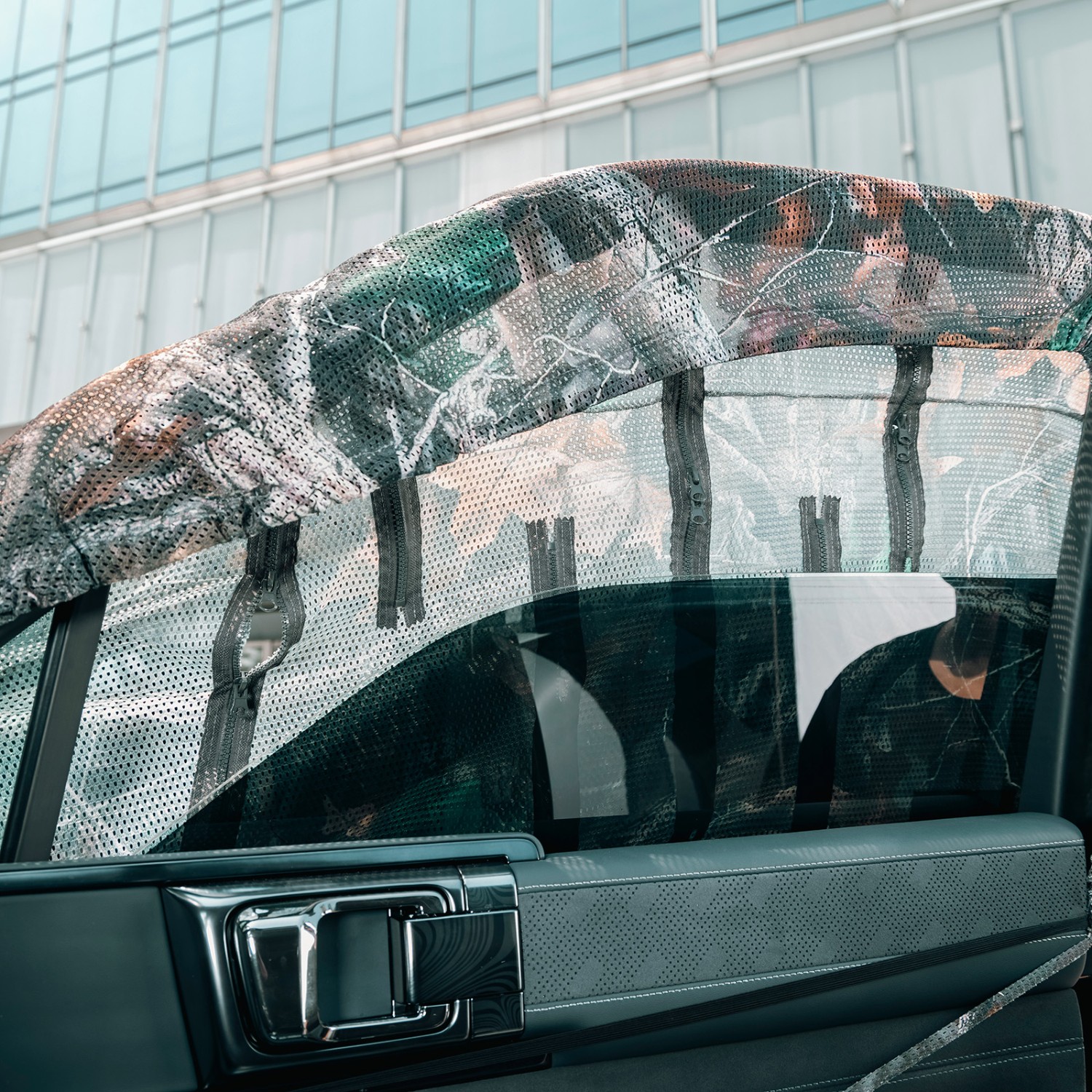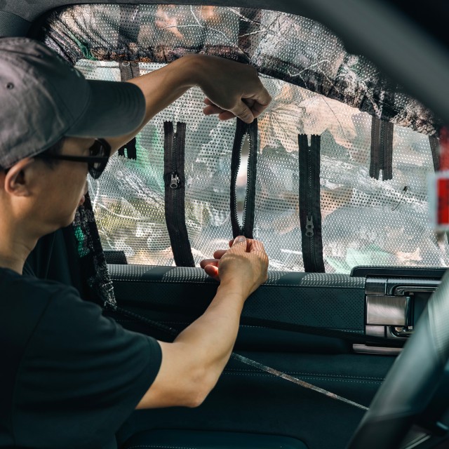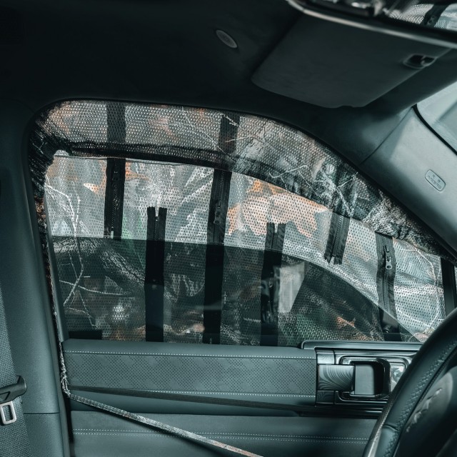Višestruki dvosmjerni patentni zatvarači omogućuju brz pristup prozorima za promatranje, omogućujući vam da izviđate okolinu bez skidanja zavjese. Dizajn omogućuje potpunu pokretljivost prozora, tako da možete lako podesiti ventilaciju u ekstremnim vrućinama ili hladnoćama. Prilagođeni izrez za retrovizor osigurava vidljivost tijekom vožnje, omogućujući vam da ostanete mobilni bez potrebe za skidanjem zavjesa.