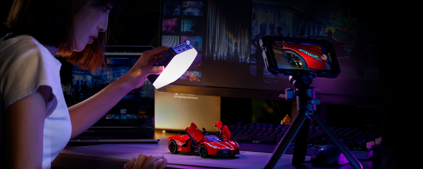 Svestrana RGB+CCT rasvjeta: Ima CRI 96, TLCI 99, podesive temperature boja od 2500K do 10000K, više od 36000 boja i 14 ugrađenih svjetlosnih efekata. Idealno za mrtve prirode, fotografiju hrane i kreativno portretno osvjetljenje.