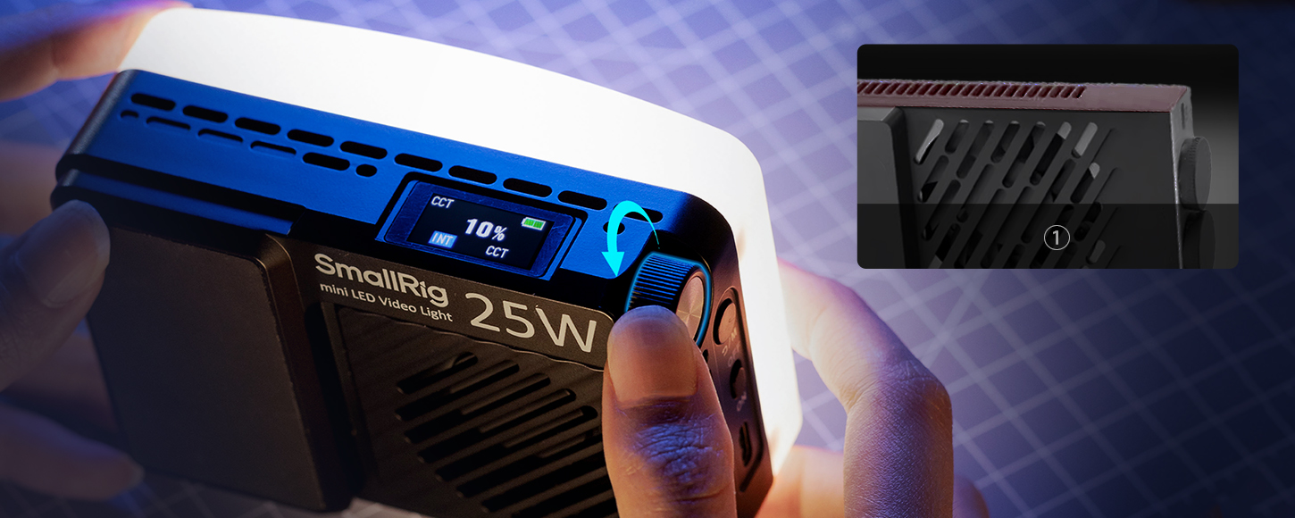 Kompaktan, a opet snažan: Dimenzije: 113 x 74 x 29 mm (4,4 x 2,9 x 1,1"), težina: 255 g, nudi impresivnih 3070 luksa na 0,5 m (5600 K) s snagom od 25 W, savršeno za vlogere, snimatelje na otvorenom i posebno solo kreativce.