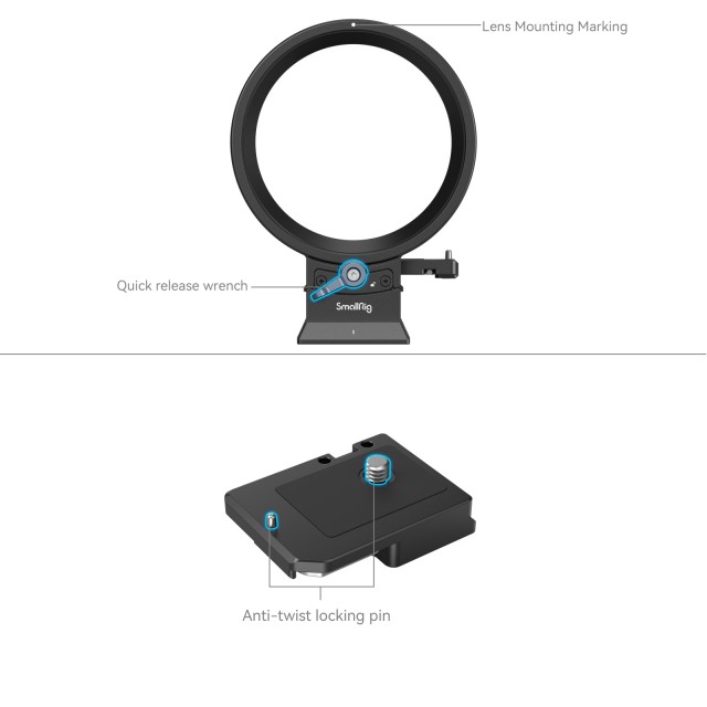 Sada otočné montážní desky SmallRig pro horizontální a vertikální snímání pro fotoaparáty Canon EOS specifické řady R 4300 je určena k rychlému přepínání mezi horizontálním a vertikálním snímáním bez nutnosti upravovat optickou osu objektivu. Zachovává plný přístup k výklopným obrazovkám LCD a portům a je vybavena vestavěnými podložkami, které zabraňují poškrábání a zkroucení. Otočnou přípojnou desku lze pouhým odemknutím knoflíku otočit o 90 stupňů a přepínat tak mezi horizontálním a vertikálním snímáním. Rychloupínací destička s opěrným kroužkem je kompatibilní se stativem Arca-type / Manfrotto RC2 a rychloupínací destičkou DJI R (spodní), její spodní otvory se závity 1/4"-20 a 3/8"-16 lze použít k rozšíření boční rukojeti nebo jiných rychloupínacích destiček. V základové desce se nachází držák QD, otvor pro řemínek na zápěstí 3848 a magnetický dvouhlavý klíč pro snadnou instalaci a uvolnění.