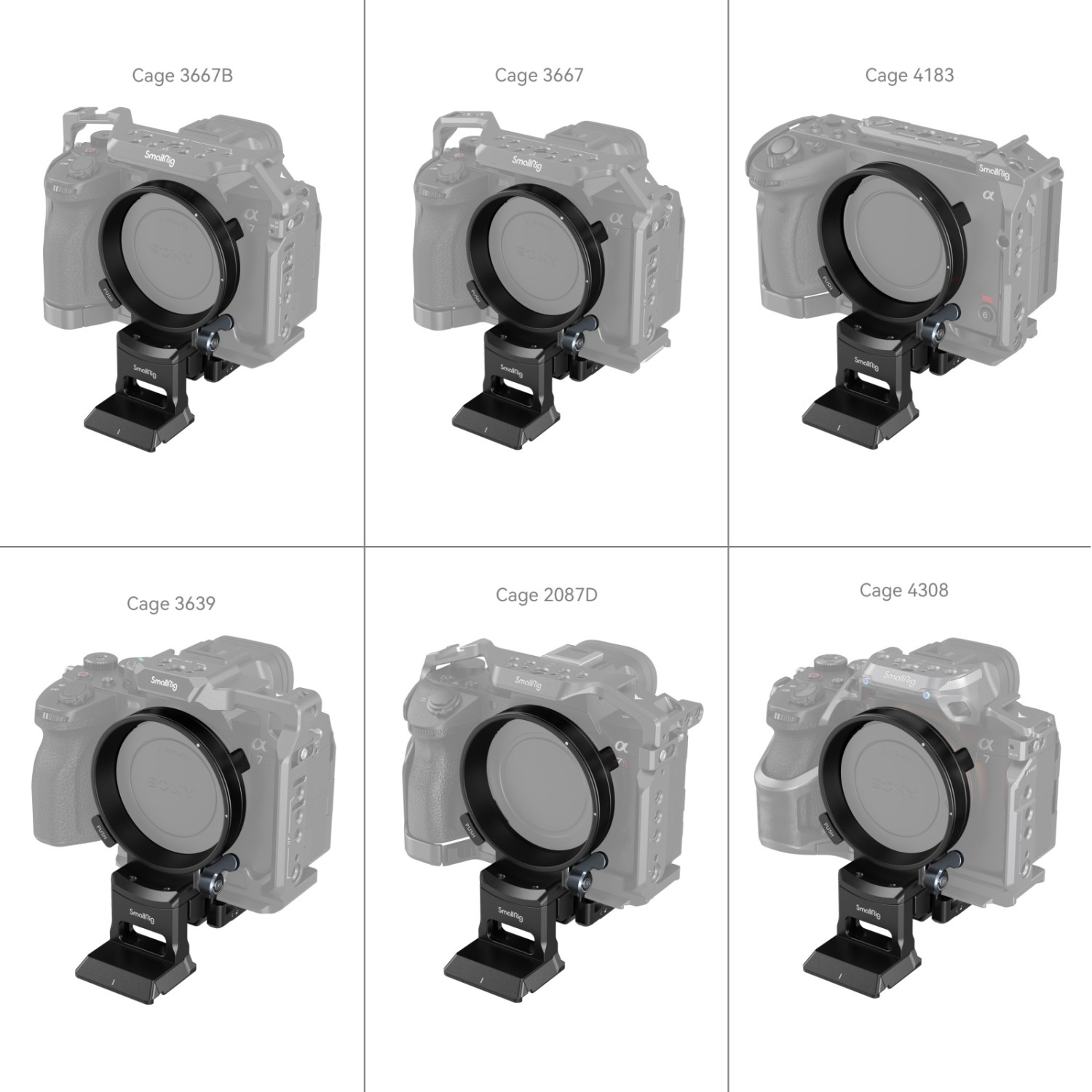 Kompatibilní s klecí v sadě 4198 / 3668 / 3668B / 3669 / 3669B / 3708 / 3710 / 4139 / 4184; nekompatibilní se svorkou pro HDMI kabel nebo boční rukojetí při vertikálním snímání.