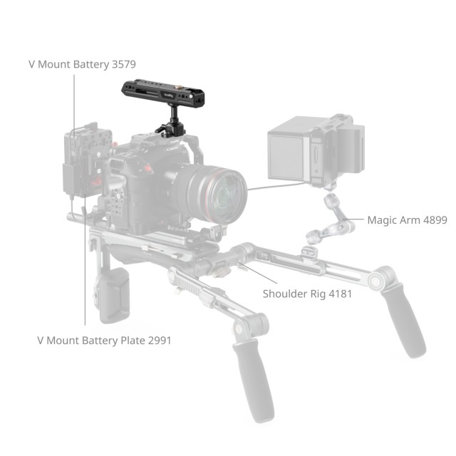 Izdužena ručka (162 mm / 6,3 inča) ima ugrađene silikonske jastučiće, pružajući udoban i siguran zahvat koji odgovara korisnicima s većim rukama. Višestruka sučelja za montažu povećavaju svestranost, uključujući 3/8"-16 ARRI rupe za lociranje za nosače monitora (ID 2093B ), 1/4"-20 rupe s navojem i rupe za lociranje za pričvršćivanje dodataka kao što su daljinski upravljači (ID 3902 ) i čarobne ruke (ID 3873 ), kao i nosače za hladnu papučicu za nosače monitora (ID 2905B ), mikrofoni (ID 3487 ) i video svjetla (ID 3286B ).