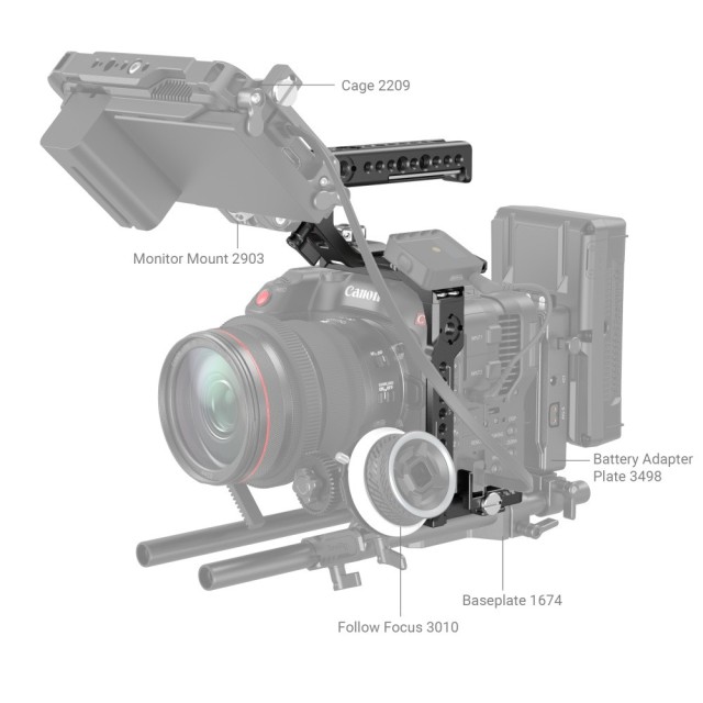 Može se izravno montirati na DJI RS 2 / RSC 2 stabilizatore i stativ Acra-Swiss jednostavnim uklanjanjem produžene osnovne ploče, omogućujući brzo prebacivanje između snimanja iz ruke, gimbala i stativa. Komplet također dolazi sa stezaljkom za HDMI kabel, koja sprječava slučajno odspajanje signala i osigurava stabilan prijenos podataka te omogućuje potpuni pristup originalnom držaču i gumbima fotoaparata. Njegove rupe s navojem 1/4"-20, rupe s navojem 3/8"-16, hladni nosači stopala, ARRI 3/8"-16 rupe za lociranje, NATO tračnice itd. podržavaju 3260/2093/2427 bočnu ručku, gornju ručku 2165/1638, čarobna ruka 2115/2071, nosač monitora 3601/2903/2905, osnovna ploča s dvostrukom stezaljkom za šipku od 15 mm 1674, stezaljka za jednu šipku 3276, itd. Dodatno, imbus ključ je uključen za jednostavno rastavljanje i sastavljanje.