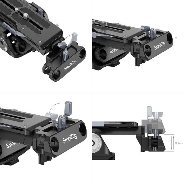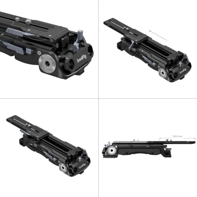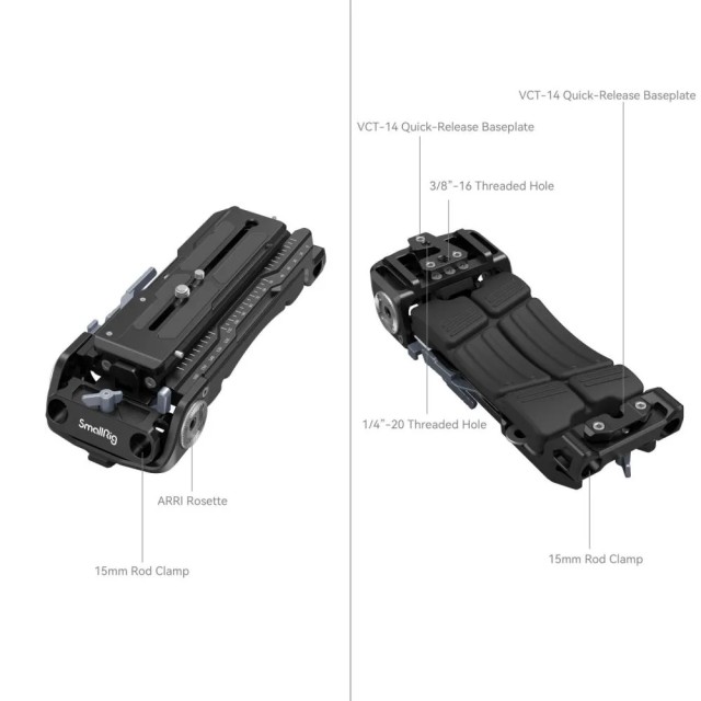 Univerzalni rameni nosač (kompatibilan sa Sony VCT-14 pločom) 2837C dizajniran je za Sony VCT-14 baznu ploču s brzim otpuštanjem. Sastoji se od SmallRig ploče s brzim otpuštanjem na vrhu koja pričvršćuje kameru i Manfrotto 501 ploče s brzim otpuštanjem koja spaja jastučić za rame. 2837B omogućuje brzo prebacivanje između snimanja s ramena, snimanja iz ruke i snimanja sa stativa. Ima standardni M6 ARRI rozetni nosač s obje strane, koji je kompatibilan s originalnom upravljačkom ručicom strojeva 1810 ili FX9, kao i sustave s dvostrukom šipkom na prednjem i stražnjem kraju, promjera 15 mm i razmaka od 60 mm. Posebno se prednja stezaljka šipke može vertikalno podesiti za 27 mm kako bi se osigurao razmak od 85 mm između središta objektiva i središta šipke za fotoaparate kao što su FX9, FS5, URSA MINI, CANON C300 itd. 2837B također pomaže uravnotežiti fotoaparat na ramenu ili platformi te instalirati sustav za fokusiranje i kutiju za matte, zahvaljujući ugrađenoj Manfrotto 501 ploči za brzo otpuštanje koja se pomiče 0-80 mm naprijed i SmallRig ploči za brzo otpuštanje koja se pomiče 0-120 mm unatrag. Ne morate prvo ukloniti sustav za fokusiranje ili kutiju za matte jer prednji sustav šipke ide zajedno s Manfrotto 501 pločom. Dodatne značajke 2837B uključuju navojne rupe od 1/4"-20 i navojne rupe od 3/8"-16 u donjoj ploči u obliku slova V, koje podržavaju razne druge ploče za brzo otpuštanje i stative. Proizvod dolazi s novim silikonskim jastučićem za ramena, ergonomski dizajniranim za ljudska ramena kako bi se osjećao mekano i udobno. Osim toga, tu je i ugrađeni ravni ključ za jednostavan pristup.