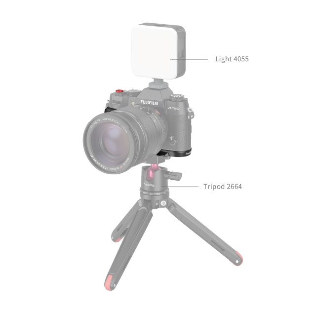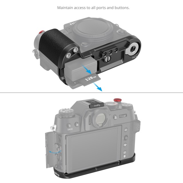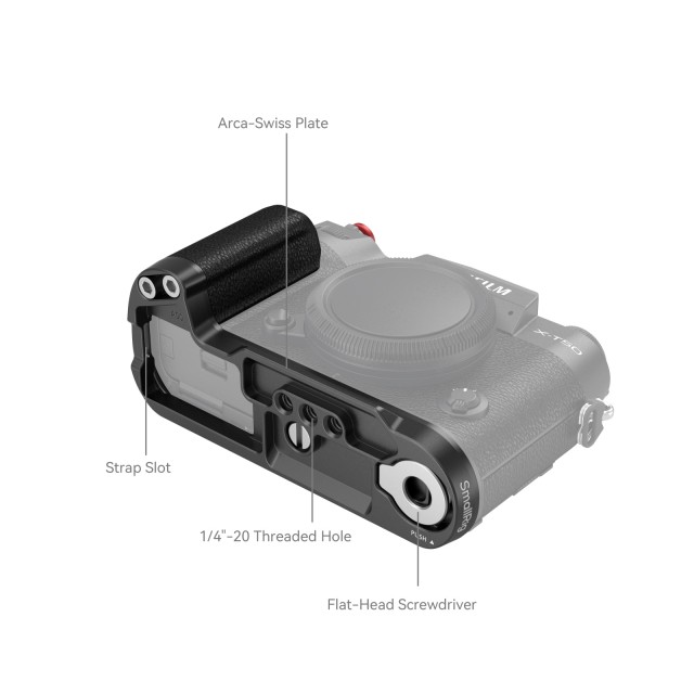 SmallRig silikonska drška u obliku slova L za FUJIFILM X-T50 (crna) 4783 dizajnirana je za poboljšanje držanja fotoaparata. L-Shape Grip montira se na kameru s 1/4"-20 vijkom na dnu, a ugrađeni silikonski jastučići sprječavaju ogrebotine. Tekstura i boja ručke savršeno odgovaraju fotoaparatu. Ugrađeni Arca- Švicarska ploča s brzim otpuštanjem omogućuje jednostavno i brzo sastavljanje i rastavljanje stativa tipa Arca. Četiri rupe s navojem od 1/4"-20 na dnu za pričvršćivanje ploča i stativa tipa Manfrotto.