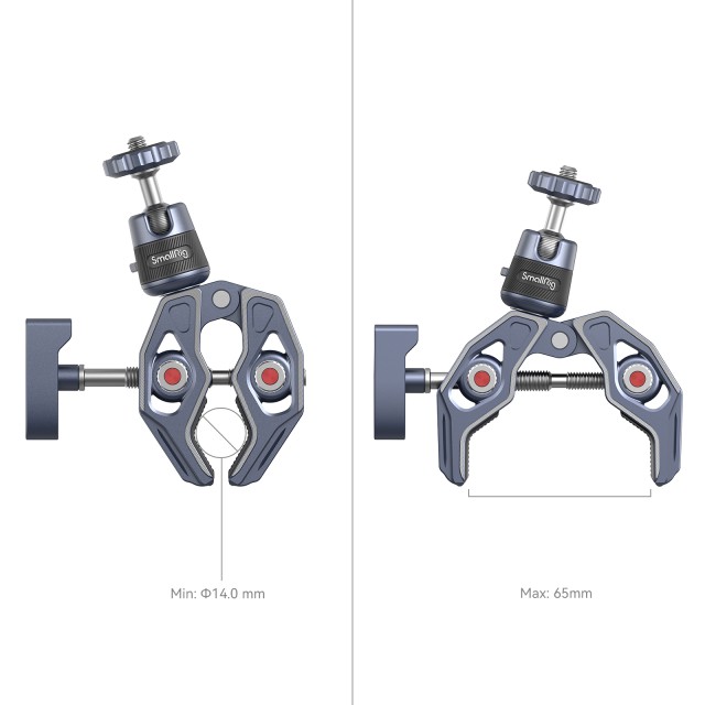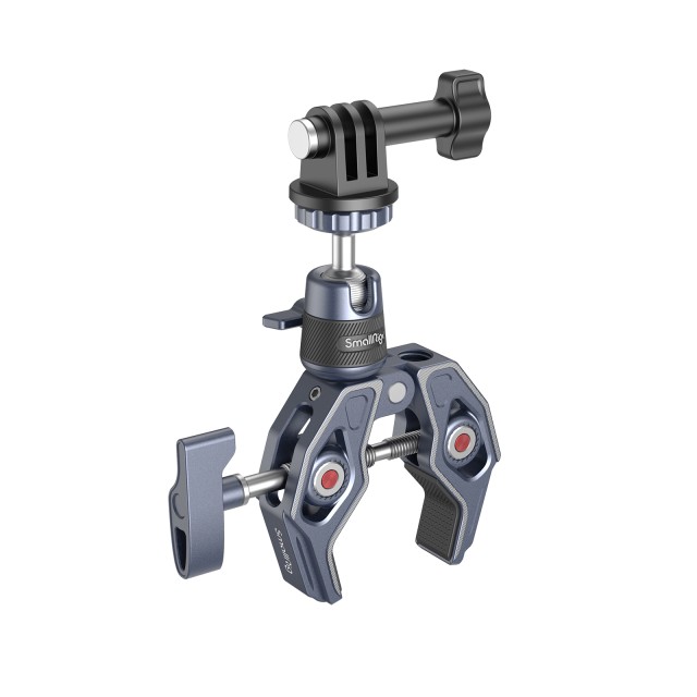SmallRig Super stezaljka s kuglastim držačem od 360° za akcijske kamere 4102 izrađen je od aluminijske legure i nehrđajućeg čelika za zrakoplove, eloksiran i izrezbaren CNC postupkom za povećanu robusnost i izdržljivost. Sadrži kosturnu konstrukciju i shark stezaljku s jačom silom stezanja, kao i široko kompatibilne rupe za pozicioniranje 1/4"-20 s navojem, 3/8"-16 s navojem i ARRI 3/8"-16. Stezaljka koja podržava šipka s minimalnim promjerom od 14 mm i maksimalnom debljinom površine od 65 mm, može brzo pričvrstiti kamere, monitore, LED video svjetla itd. na okrugle cijevi, stolove, upravljače, tronošce i stabilizatorske prstenove za ručno upravljanje.