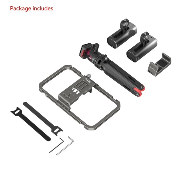 SmallRig All-in-One Video Kit Pro (2022) 4120 je profesionalno rješenje za vlogging putem pametnog telefona i live streaming. Set uključuje, između ostalog, univerzalni kavez za telefon, bočnu ručku za bežično upravljanje, stativ s brzim otpuštanjem i držač za power bank. Konkretno, ručka olakšava uključivanje/isključivanje kontrola snimanja i snimanja radi poboljšanja učinkovitosti i iskustva; stativ omogućuje brzo prebacivanje između ručnog i stativa i ima veći promjer otvora za veću stabilnost; Power Bank držač omogućuje spajanje vanjskih baterija za produljenje vremena rada. Osim toga, rupe s navojem od 1/4''-20 i nosači s hladnim priključkom podržavaju kombinaciju dodataka, što stvara više kreativnosti i zabave za video stvaratelje.