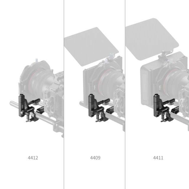 SmallRig Swing-Away 4414 dizajniran je za korisnike koji trebaju brzo promijeniti leće na svojoj mat kutiji. Ima rupu s navojem od 1/4" i rupe za pozicioniranje na dnu za smještaj uobičajeno korištenih mat kutija. S gornjim otvorom za jednostavnu instalaciju prema gore, ovaj dizajn osigurava besprijekoran rad uz dvostruke šipke od 15 mm, omogućujući neometanu upotrebu Swing-Away-a mehanizam bez ugrožavanja stabilnosti zahvaljujući sigurnom zaključavanju klizača s dvostrukom šipkom nudi horizontalno i vertikalno podešavanje, prilagođavanje kamera različitih visina i različitih veličina leća, glatko se otvara pod kutom od 90° 180 stupnjeva, stvarajući dovoljno prostora za promjenu objektiva.