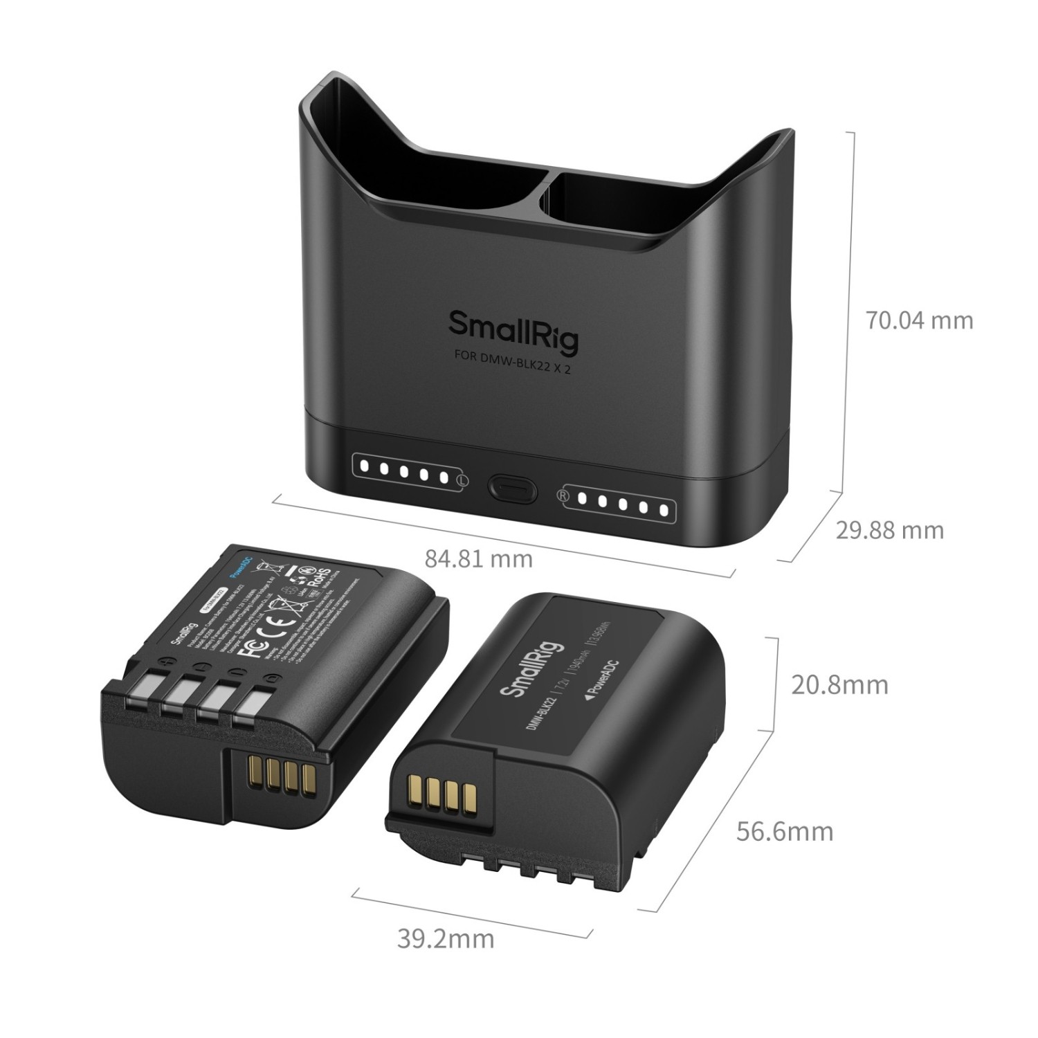 SmallRig Turbo komplet za punjenje baterija za fotoaparat DMW-BLK22 5487 uključuje dvije visokoučinkovite baterije i dvokanalni brzi punjač. S čipom za potpuno dekodiranje, ovaj komplet osigurava potpunu kompatibilnost s Panasonic DMW-BLK22 baterijama, uklanjajući skočna upozorenja, a istovremeno podržava prikaz napajanja u fotoaparatu i korištenje originalnog punjača.