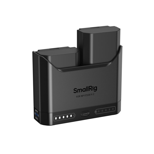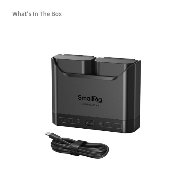 SmallRig Turbo komplet za punjenje baterija za fotoaparat NP-FZ100 5483 uključuje dvije visokoučinkovite baterije i dvokanalni brzi punjač. S čipom za potpuno dekodiranje, ovaj komplet osigurava potpunu kompatibilnost sa Sony NP-FZ100 baterijama, uklanjajući skočna upozorenja, a istovremeno podržava prikaz napajanja u fotoaparatu i korištenje originalnog punjača.