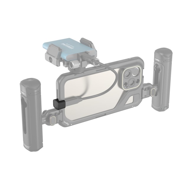 Adapter audio signala SmallRig Type-C na Type-C 4406 je dodatak za video kavez za seriju iPhone 15 Pro. Adapter prenosi Type-C signal i sučelje napajanja mobilnog telefona na bočnu stranu mobilnog telefona tako da je mobilni telefon spojen na bočnu ručku za snimanje pejzaža bez ometanja upotrebe mikrofona, SSD tvrdog diska, ili napajanje.