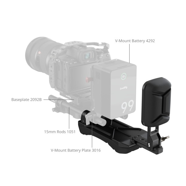 Stražnja podloga izrađena je da spriječi klizanje opreme prema naprijed i omogućuje podešavanje naprijed-nazad kako bi se prilagodilo različitim veličinama tijela. Nadalje, može se postaviti kao podloga za prsa kada se postavi uspravno, povećavajući stabilnost i smanjujući naprezanje tijekom snimanja iz ruke.