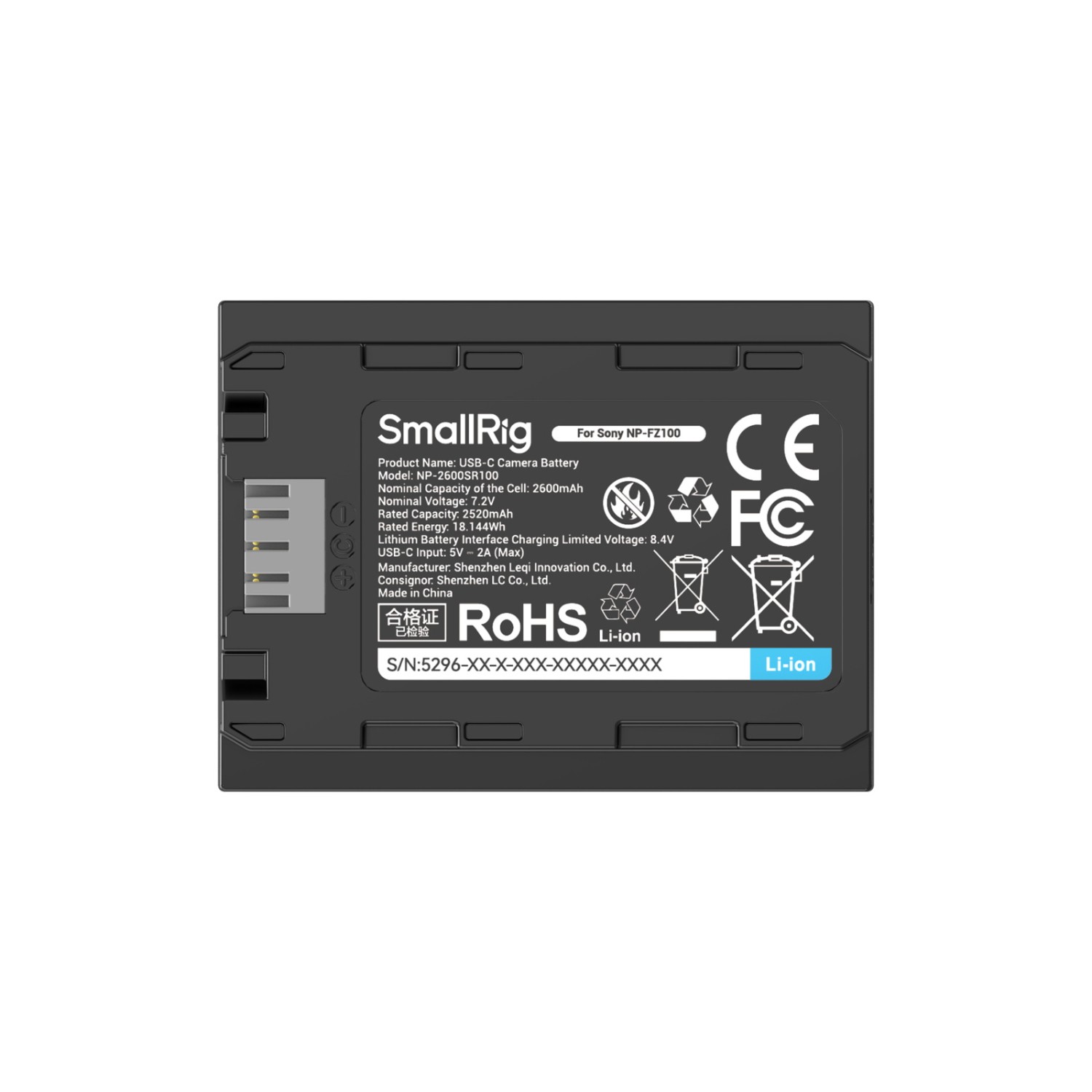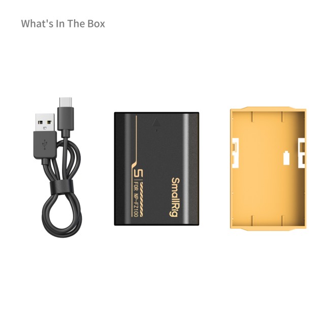 SmallRig 5296 NP-FZ100 USB-C baterija je litij-ionska baterija visokog kapaciteta od 2600 mAh dizajnirana za Sonyjeve fotoaparate bez zrcala i filmske kamere, koja nudi brzo USB-C punjenje, potpuno dekodiranje kamere bez iskakanja te istu veličinu i pouzdanost kao i originalna Sonyjeva baterija.