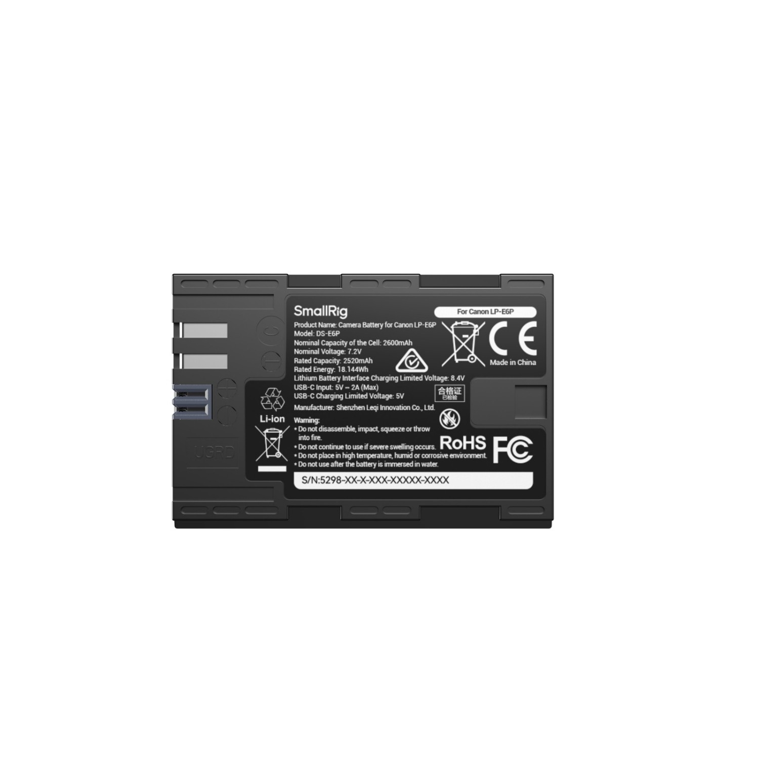 SmallRig baterija za kameru Canon LP-E6P 5298 ima 5 LED indikatora za praćenje razine napunjenosti u stvarnom vremenu. Crveno upozoravajuće svjetlo obavještava korisnike o niskoj razini napunjenosti baterije, sprječavajući neočekivana isključenja tijekom kritične upotrebe. Njezin ugrađeni USB-C priključak podržava punjenje putem power bank uređaja, zidnih adaptera, punjača za automobil ili namjenskih punjača za kameru, osiguravajući praktično punjenje bilo kada i bilo gdje.