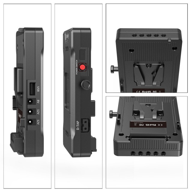 Baterijska ploča SmallRig V Mount s dvostrukom stezaljkom za šipke od 15 mm 3203 dizajnirana je za dulje trajanje baterije za vašu kameru putem V mount baterije. Ploča koja koristi standardni Vmount prikladna je za većinu Vmount baterija. Omogućuje izlazni priključak od 8 V DC, dva izlazna priključka od 12 V DC, izlazni priključak od 14,8 V D-Tap i 5 V/2 A USB izlazni priključak za napajanje vašeg fotoaparata ili kamkordera i drugih vanjskih dodataka kao što su monitor, telefon itd. putem baterije . Sadrži prekidač za napajanje koji kontrolira sve izlazne priključke za brže i praktičnije uključivanje ili isključivanje postavki. Dolazi s dvostrukom stezaljkom za šipku od 15 mm za pomoć pri pričvršćivanju ploče na vaš LWS sustav šipki od 15 mm i nekoliko rupa s navojem od 1/4"-20 na stražnjoj, gornjoj i donjoj strani za pričvršćivanje dvostruke stezaljke za šipku, magične ruke ili drugog pribora.