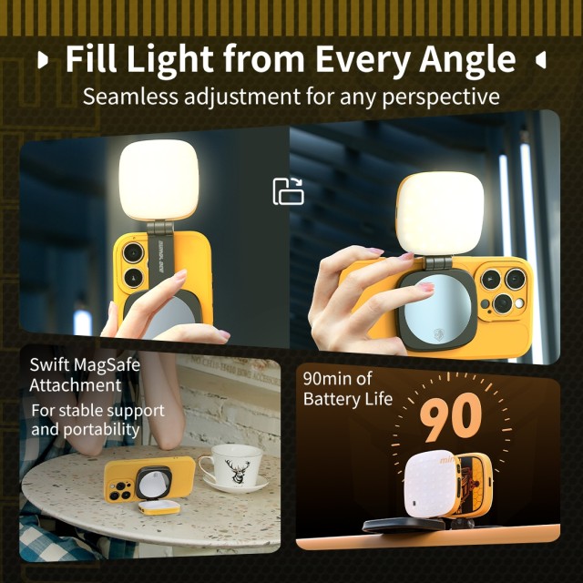 · Jednostavna kompatibilnost s MagSafe tehnologijom: Trenutačno pričvrstite i odvojite ovo LED svjetlo za punjenje pomoću MagSafe tehnologije, osiguravajući sigurnu i besprijekornu vezu s kompatibilnim uređajima. · 360° podesivo osvjetljenje za savršenu pokrivenost: Inovativna mini glava s dvije osi omogućuje…