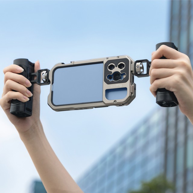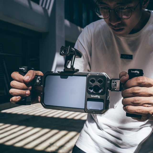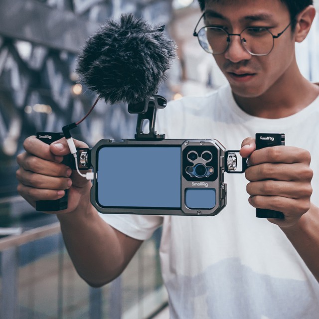 SmallRig Video Kit Lite za iPhone 13 Pro Max 3604 ima dvije ručke za stabilno snimanje i vlogging. Sadrži 1/4"-20 anti-rotacijske rupe s navojem i hladne cipele za podršku pribora kao što su BUT2429 tronožac, 3452 mikrofon i 3286 LED svjetlo, itd. Podržava M-mount ili 17 mm navojne leće nakon zamjene stražnje ploče. Šupljina dizajn omogućuje pristup gumbima, priključcima, radaru i ultraširokokutnom objektivu iPhonea. Potpuno metalni kavez s ugrađenim jastučićima sprječava ogrebotine i smanjuje vibracije. Kavez omogućuje vodoravno i okomito snimanje.