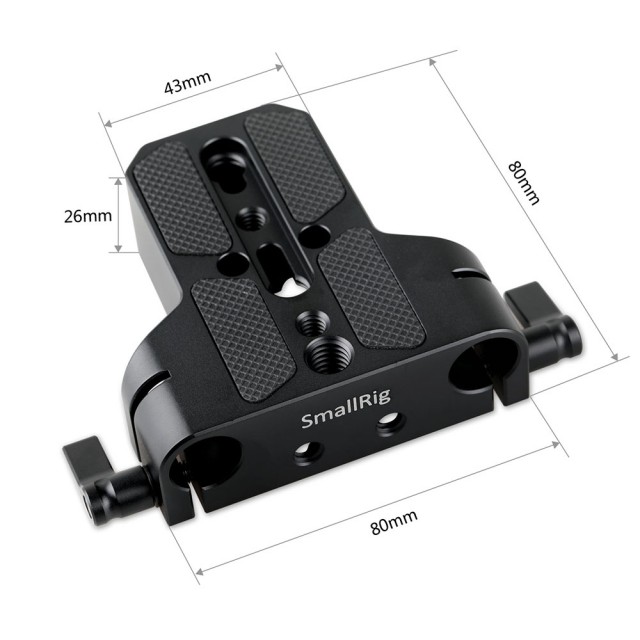 Ova niskoprofilna osnovna ploča je jednostavna i lagana osnovna ploča za trenutačno popularne fotoaparate kao što su Sony FS7, serija Sony A7, Canon C100/C300/C500 itd. Pričvršćuje se na fotoaparat s 3/8"-16 ili 1 /4"- 20. Osnovna ploča ima rupe za šipke promjera 15 mm i razmaka od 60 mm, koje vam omogućuju pričvršćivanje pratećeg fokusa, mat kutije, naslona za leće ili drugog pribora.