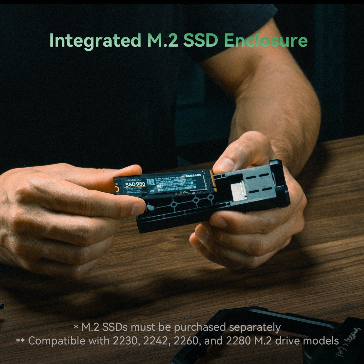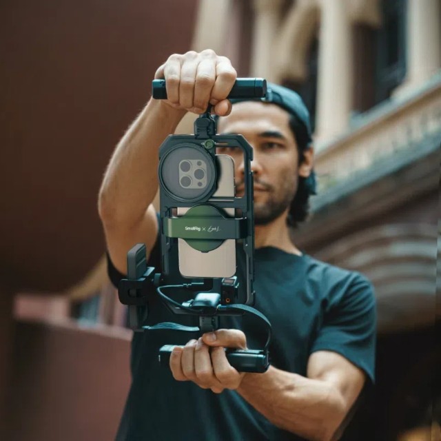 SmallRig x Brandon Li All-in-One mobilni video komplet, Full Quick Release Co-design Edition 4596B, savršeno je rješenje na jednom mjestu za profesionalno snimanje videa pametnim telefonom. Komplet uključuje univerzalni okvir za mobilni telefon, rotirajuću bočnu ručku s kućištem za M.2 SSD i bežičnim daljinskim upravljačem, univerzalni adapter za filter od 67 mm, magnetski VND 2-32 (1-5 koraka), 4-u-1 USB-C priključnu stanicu, adapter za brzo otpuštanje Arca-Swiss, držač power bank-a i ostali pribor. Univerzalni okvir podržava magnetske filtere od 67 mm, pružajući rješenja protiv odsjaja za većinu mobilnih telefona i smanjujući propuštanje svjetlosti iz filtera. Rotirajuća bočna ručka s bežičnim upravljanjem integrira više funkcija i ima kućište za M.2 SSD za podršku izravnog vanjskog snimanja. Odvojivo bežično upravljanje omogućuje daljinsko snimanje, fokusiranje i zumiranje. Kontinuirana rotacija adaptera ručke omogućuje trenutno prebacivanje između bočnog i gornjeg načina rada ručke, dok mehanizam za brzo otpuštanje s obje strane omogućuje brzu montažu i podešavanje bez alata. Također, komplet dolazi s Arca-Swiss adapterom za brzo otpuštanje, koji podržava brzo pričvršćivanje na kavez i profesionalne stative. Komplet kaveza nudi više standardnih 1/4"-20 navojnih rupa i nosača za hladne papučice, što podržava slobodnu kombinaciju dodatne opreme i pruža više mogućnosti za snimanje. 4-u-1 USB-C priključna stanica nudi snažan PD 100W priključak za punjenje, USB-C 3.1 priključak i dva USB-C 2.0 priključka. Kada se koristi za mobilno snimanje videa, omogućuje istovremeno punjenje, pohranu ProRes videa i korištenje USB-C mikrofona.