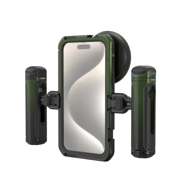 SmallRig x Brandon Li Mobile Video Kit za iPhone 15 Pro Max Co-design Edition 4407B uključuje dvije ručke koje osiguravaju stabilno snimanje videozapisa i vlogging; bežično upravljanje omogućuje snimanje "jednim klikom". Kavez ima višestruke rupe s navojem od 1/4"-20 i hladne cipele za pričvršćivanje ručke, stativa, mikrofona, LED video svjetla itd. Svi imaju novi ekosustav SmallRig Quick Release za jednostavno i trenutno prebacivanje između vodoravnog i vodoravnog snimanja. vertikalne orijentacije.