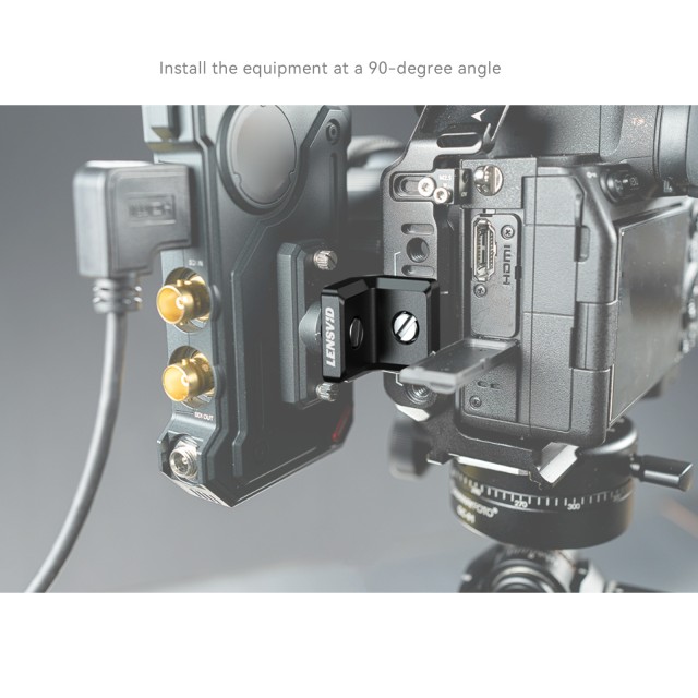 1. Pruža kompaktno rješenje za instalaciju pod kutom od 90° za opremu i dodatke, kao što su bežični odašiljači slike, monitori, V-mount ploče za montažu itd., i čini opremu fotoaparata kompaktnijom.