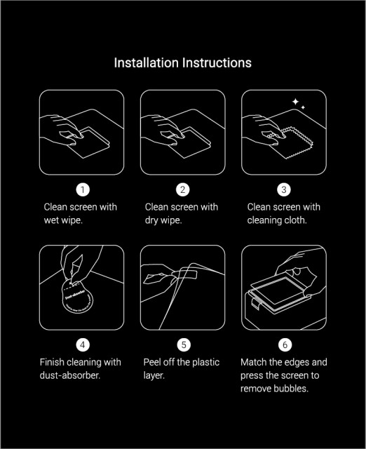 Napomena: kako bi se spriječila prašina, zaštitnik zaslona je dizajniran da bude nešto manji od veličine zaslona.