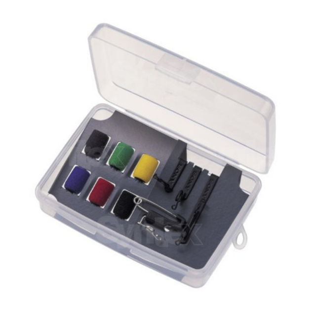 Set uključuje šest uretanskih vjetrobrana u šest boja (crvena, žuta, zelena, plava, siva i crna) i četiri vrste nosača. Set je u praktičnom pakiranju.