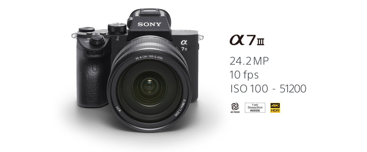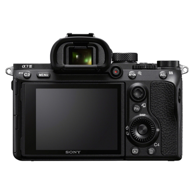 Sony Alpha A7 Mark III je nova generacija reportažnog modela kompaktne sistemske kamere (CSC/mirrorless) koja je svojom brzinom i kvalitetom slike čak i pri vrlo visokim osjetljivostima pogodna ne samo za reportažne i sportske fotografe, već i za autore dokumentarnih filmova, fotografe portreta, pejzažiste i za mnoge druge amaterske ili profesionalne fotografe. Opremljen je stabiliziranim 24,2 MPix FullFrame Sony Exmor R CMOS senzorom od pet osi s nativnim rasponom osjetljivosti od ISO100 - ISO51 200. Procesor za obradu slike BIONZ X obrađuje snimljene podatke ekstremnom brzinom i omogućuje vam snimanje fotografija s proširenom osjetljivošću raspon ISO50 - ISO204 800, procesni 4K video i suradnja s hibridnim AF sustavom sa 693 AF točke za fazu i 425 AF zona za detekciju kontrasta fokusa za snimanje brzih radnji kontinuiranim snimanjem s frekvencijom do 10fps. Kamera ima izvrsnu ergonomiju i prilagodljivu kontrolu korištenjem brojnih gumba koje korisnik može podesiti. 0,5" elektroničko OLED tražilo s XGA rezolucijom prikazuje 100% pokrivenost slike. Na poleđini se nalazi preklopni i dodirni 3" TFT LCD sa 100% pokrivenošću vidnog polja. Povezivost s okolinom osiguravaju Wi-Fi (802.11b/g/n) s NCF Forum tehnologijom (tip 3), Bluetooth 4.1, SuperSpeed USB3.1 Gen1 konektor (tip-C), Micro HDMI konektor (tip- D), utičnica s višestrukim sučeljem sa sinkro priključkom, 3,5 mm priključkom za mikrofon i 3,5 mm priključkom za slušalice. Kompaktno kućište fotoaparata od magnezija vrlo je čvrsto, lagano i savršeno zaštićeno od prašine i tekuće vode.