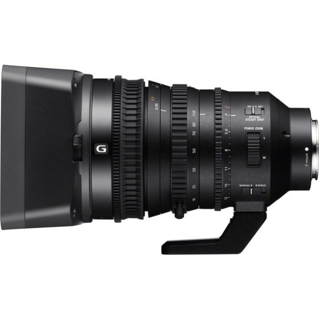 Model Sony E PZ 18-110mm F4 G OSS pokriva područje Super35mm i APS-C senzora te je kompaktan i lagan (1,1 kg). Ima raspon žarišne duljine od 18 – 110 mm (6x zoom) i kompatibilan je sa Sony Alpha kamerama, uključujući model A7, te s profesionalnim 4K kamerama FS7 ili FS5. Tehnologija Smooth Motion Optics (SMO) koristi se za optimizaciju funkcija leće tijekom video snimanja i minimalizira "disanje" i pomicanje optičke osi ili zamućenje slike prilikom zumiranja. Objektiv se može kupiti zasebno, npr. zajedno s kamerom FS7 II u kompletu PXW-FS7M2K.