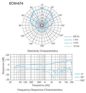 ECM-674 elektret kondenzatorski usmjereni (superkardioidni) mikrofon s dvostrukim napajanjem (fantom ili AA)