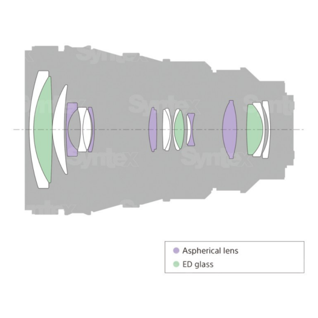 Sastoji se od 18 leća raspoređenih u 12 skupina. Optički sustav koristi 5 posebno oblikovanih leća s asferičnom površinom i 3 leće izrađene od posebnog ED stakla niske disperzije.