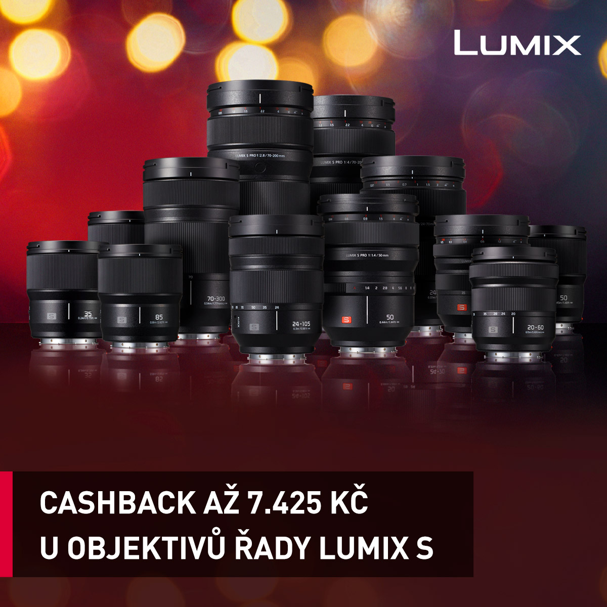 Ostvarite popust nakon kupnje objektiva serije LUMIX S! Iznos koji vraća proizvođač može doseći do 7425 CZK (ovisno o objektivu) uključujući PDV i odnosi se na modele S-X50E , S-E2470E , S-E70200E (7425,-), S-R70200E (4950,-), S-R1635E , S-R70300E (3.715,-), S-R24105E , S-S24E (2.475,-) i S-S85E , S-S35E (1.240,-). Povrat novca može se primijeniti na gore navedene leće kupljene između 1. kolovoza i 11. listopada 2022. nakon registracije (između 15. kolovoza i 30. listopada 2022.) na web stranici proizvođača . Navedeni iznos dobit ćete natrag na svoj račun nakon registracije.