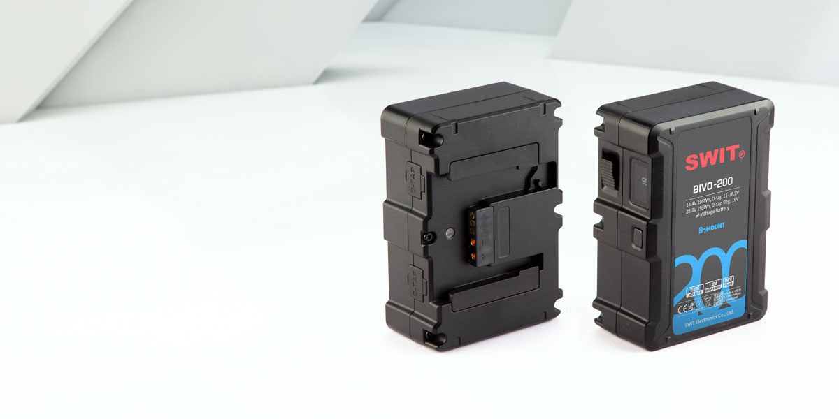 BIVO-200 je 14,4 V (10,8-16,8 V) i 28,8 V (22-33,6 V) dvonaponska B-mount baterija, za ARRI kamere i razne kompatibilne s kamerama i cinegearima s običnim naponom. Baterija će prepoznati vrijednost ID pina otpornika B-montažne ploče, a zatim dati izlaz od 14,4 V ili 28,8 V, bez ikakvih rizika od zlouporabe.