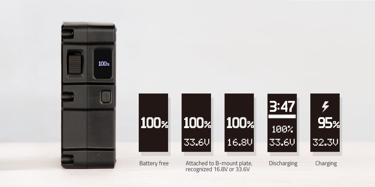 Baterija BIVO-200 pruža OLED zaslon za prikaz statusa baterije i informacije o napajanju, uključujući izlazni napon, postotak snage, preostalo vrijeme rada i zaštitni kod upozorenja ako se otkrije bilo kakva abnormalnost.