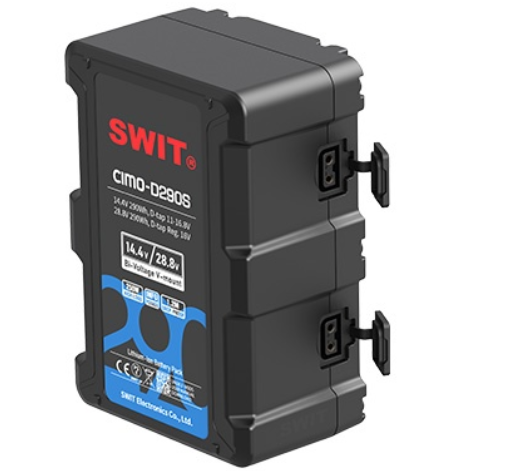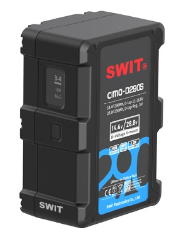 SWIT CIMO-D290S je profesionalna V-mount baterija od 290 Wh s dvonaponskim naponom i OLED zaslonom, koja podržava izlaze od 14,4 V i 28,8 V za visokonaponske filmske kamere i rasvjetu, s brzim punjenjem, dvostrukim D-tap izlazima i višestrukom zaštitom strujnih krugova.