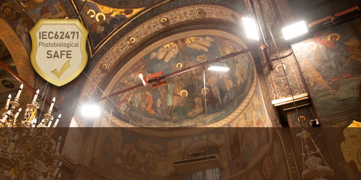 Svjetlo je testirano i certificirano kao „Izuzeto - Bez fotobiološke opasnosti“ prema standardu IEC 62471:2008, bez rizika od ultraljubičastog zračenja, visokoenergetskog plavog svjetla, treperenja. Na određenim lokacijama poput crkava, muzeja i drevnih građevina, korištenje ovog rasvjetnog tijela može učinkovito spriječiti blijeđenje i ljuštenje zidnih artefakata, čime se štiti kulturna baština.