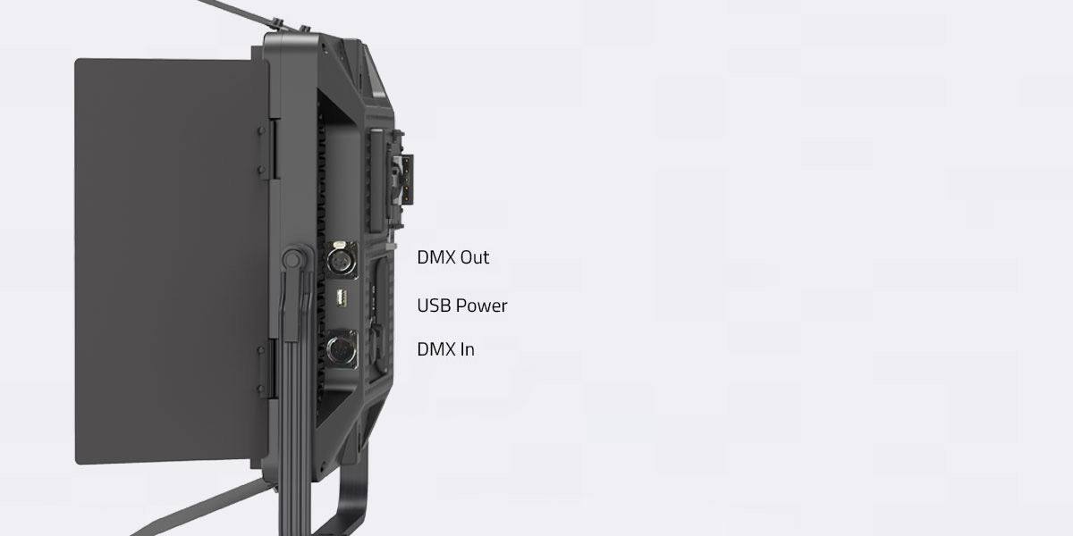 DMX adresa: N = prigušivač; N+1 = temperatura boje. Pruža 5V USB izlaz. Možete koristiti SWIT LA-WR8 džepni bežični DMX kontroler i napajati bežični DMX adapter putem ugrađene USB utičnice.
