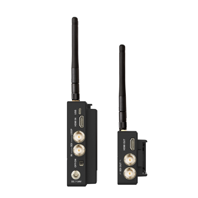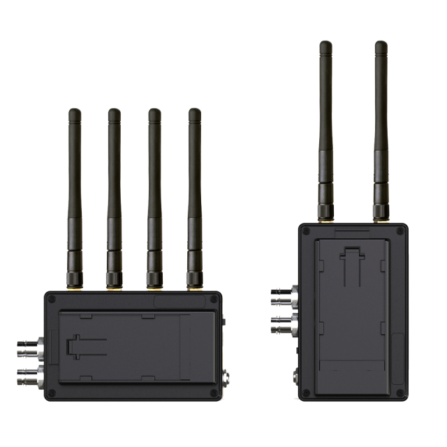 Set odašiljača i prijamnika za bežični prijenos do 1080p60 3G-SDI/HDMI videa (plus 2 audio kanala) na udaljenosti od približno 600 m (linija vidljivosti) u pojasu 5,1 – 5,9 GHz uključujući. podrške za DFS.