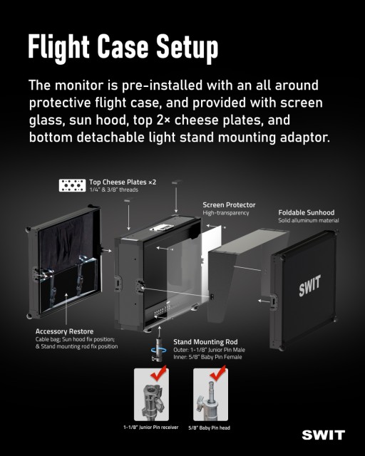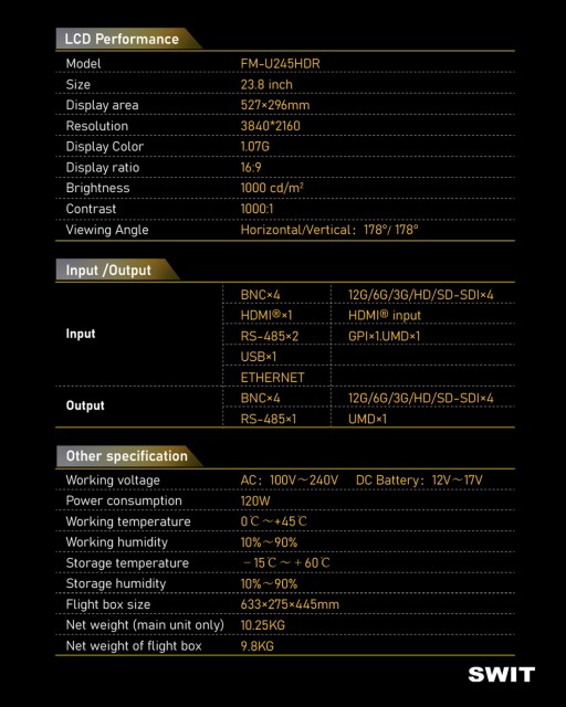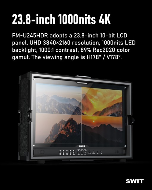Ovaj 23,8-inčni 4K HDR monitor za terensku produkciju dizajniran je za profesionalnu upotrebu, nudeći svijetli zaslon od 1000 nita za jasan prikaz na sunčevoj svjetlosti. Ima opsežna video sučelja, uključujući Quad 12GSDI i HDMI 2.0, što ga čini idealnim rješenjem za terensku produkciju iz više izvora. Monitor dolazi spreman za upotrebu s torbicom za let i osnovnim priborom.