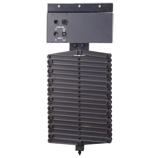Na stražnjoj ploči pruža AC 100-240V, 50/60Hz ulaz i izlaz, PowerCON True1 konektore i DMX 5-pinski XLR ulaz i izlaz petlje za serijsku vezu.
