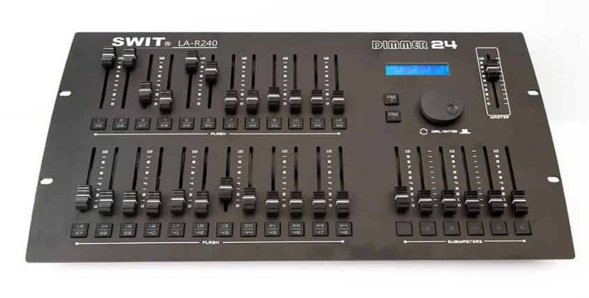 SWIT LA-R240 je kaskadna DMX512 svjetlosna konzola s 24 kanala za studijska emitiranja, pozornicu i rasvjetu događanja. Ima klizače za 24 kanala, 6 podmajstora, 1 glavni klizač, LCD zaslon za prikaz vrijednosti kanala i mogućnost proširenja do 96 kanala putem serijskog priključka.