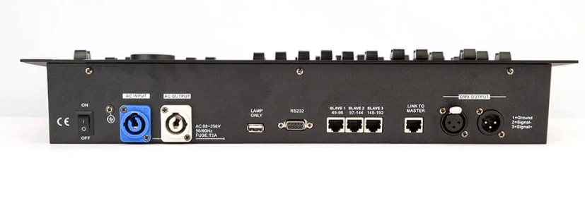 Povezivost uključuje 3-pin XLR DMX ulaz/izlaz, RS232 daljinsku kontrolu, RJ45 serijsku vezu i PowerCON AC 88–256 V za ulaz i izlaz u petlji. Kompaktna i robusna konzola dimenzija je 482 × 265 × 75 mm i teži 2,65 kg, što je čini pogodnom za prijenosne ili stalne rasvjetne postavke.