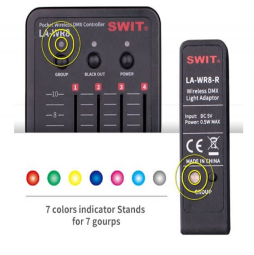 Upravljač ima 8 fizičkih fader-klizača i 7 opcija za prebacivanje grupa, označenih sedam obojenih LED dioda, što omogućuje upravljanje do 56 DMX kanala ukupno. Usklađivanjem boje grupe između upravljača i svjetlosnih adaptera, korisnici mogu jednostavno upariti i učinkovito upravljati rasvjetnim tijelima.